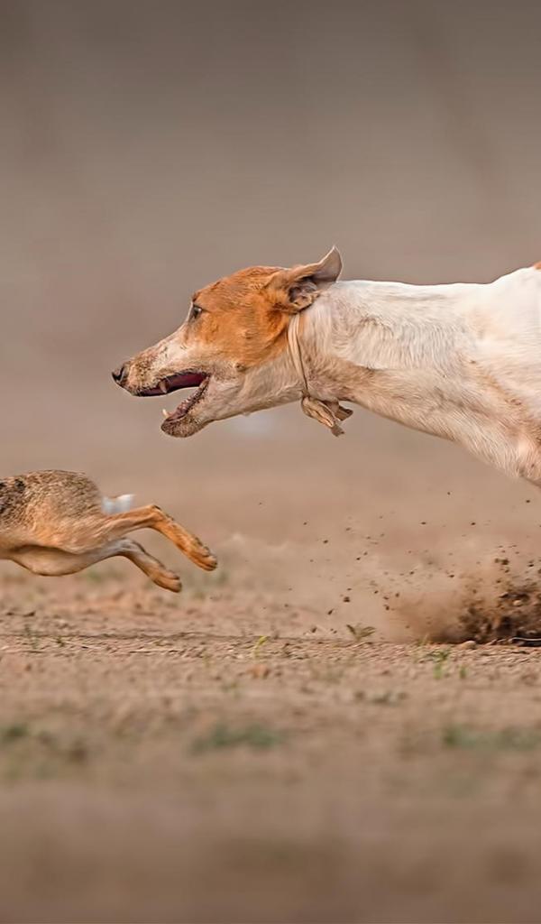 Wallpaper Pharaoh Hound is catching a hare