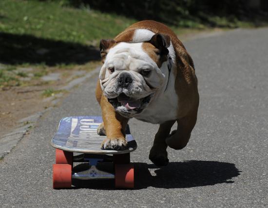 » Wallpaper English bulldog on a skateboard