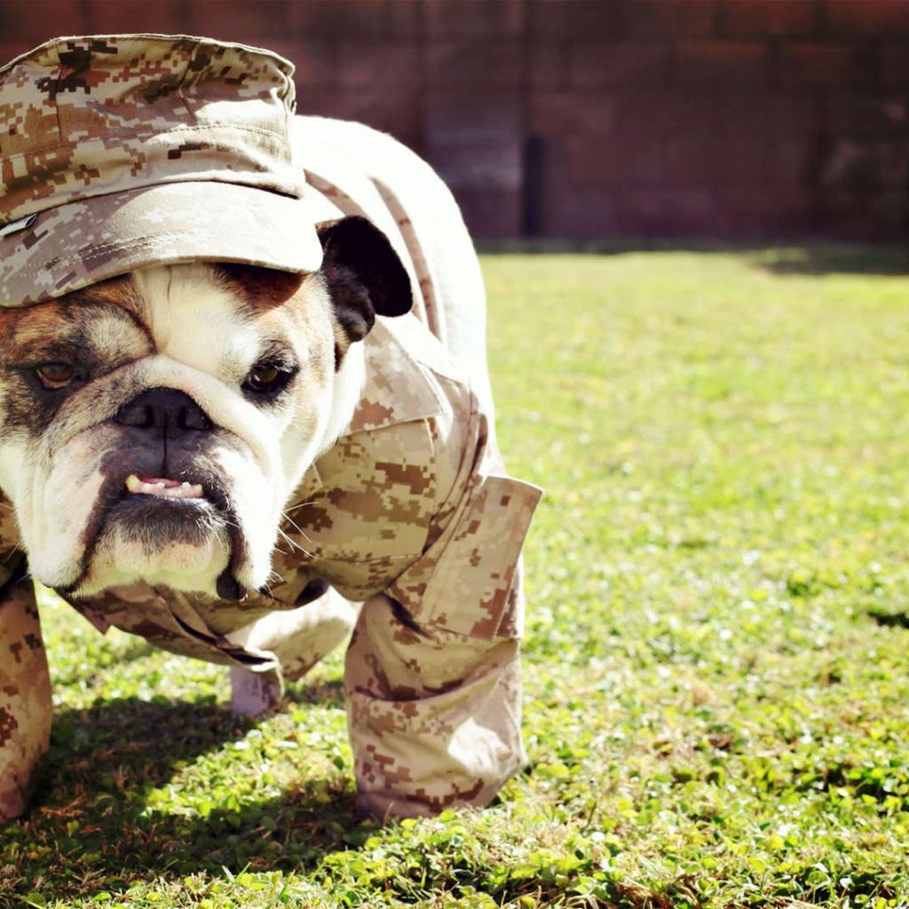 Wallpaper English Bulldog in uniform
