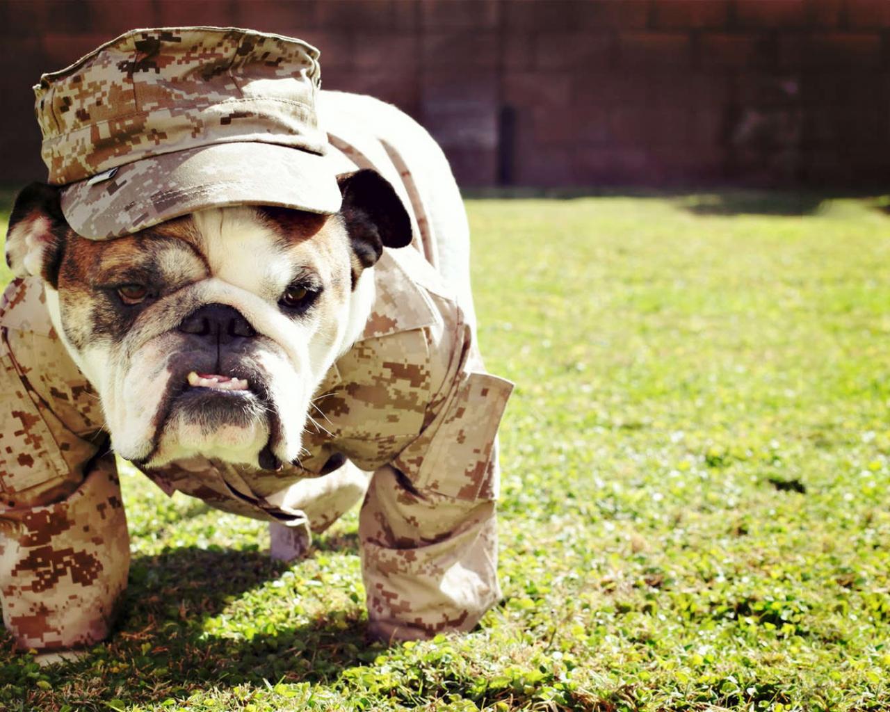 Wallpaper English Bulldog in uniform