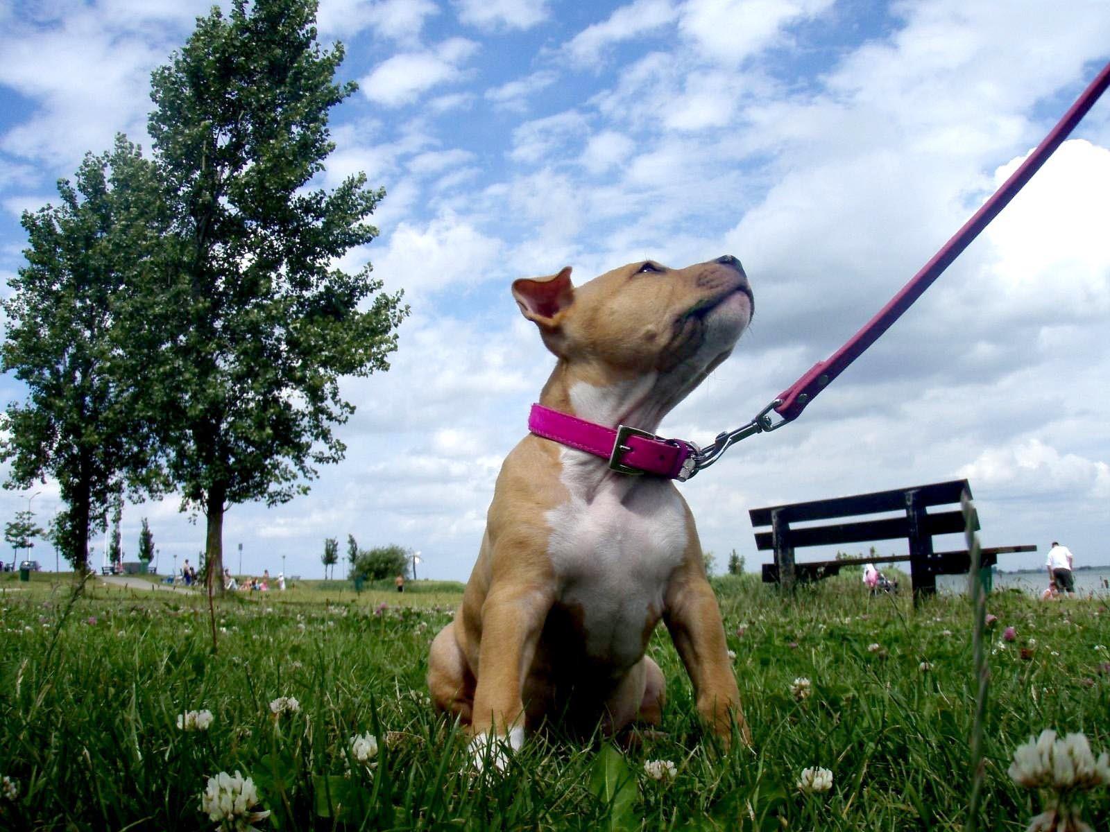 Wallpaper Puppy American Staffordshire Terrier on a leash