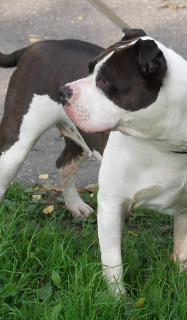 Wallpaper American Staffordshire Terrier on a leash