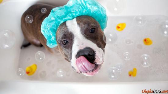 Wallpaper American Staffordshire Terrier bathes