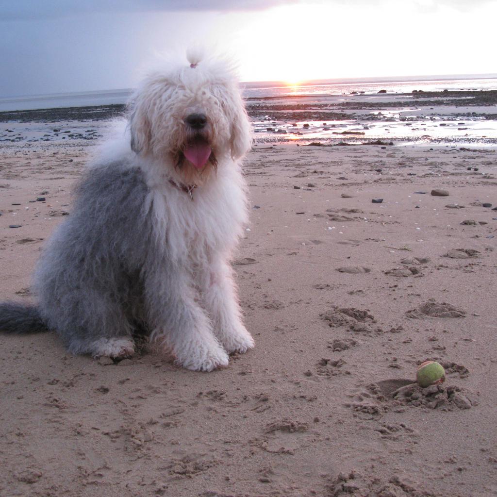 Wallpaper Bobtail dog on the beach