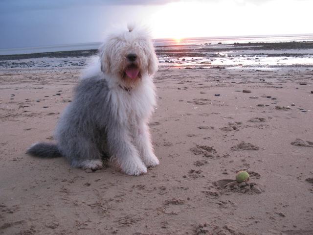 Wallpaper Bobtail dog on the beach