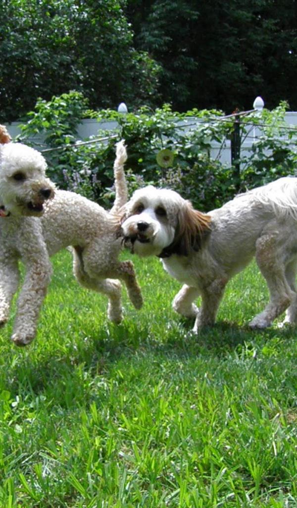 Wallpaper Couple dogs Bedlington Terrier playing on the lawn