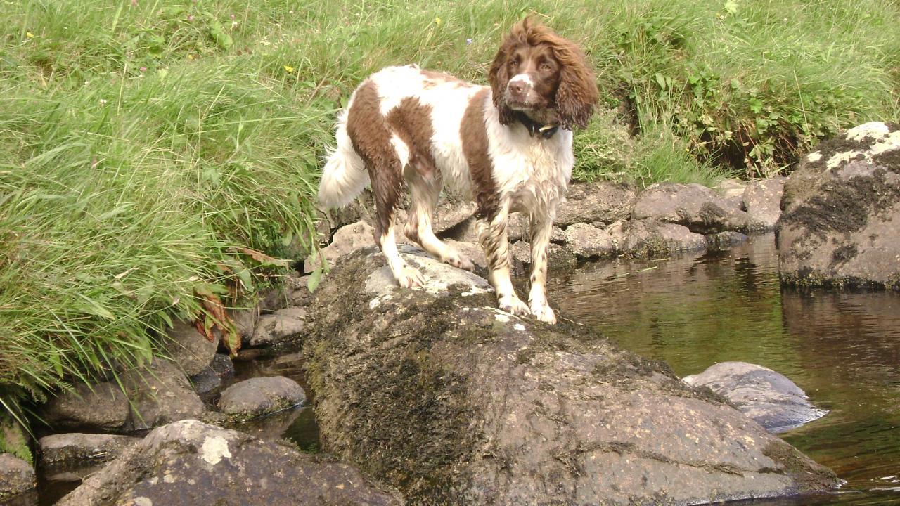 » Wallpaper English Springer Spaniel on a stone