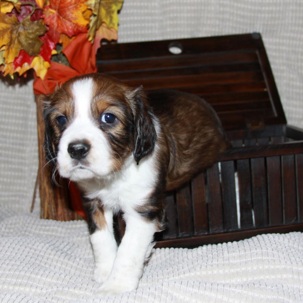 Wallpaper English Springer Spaniel dog got out of the basket
