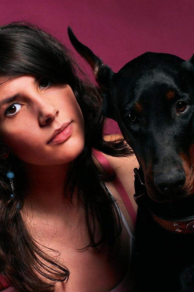 Wallpaper Girl and Doberman