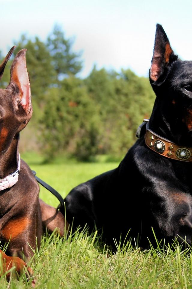 Wallpaper Dobermans lying in the forest