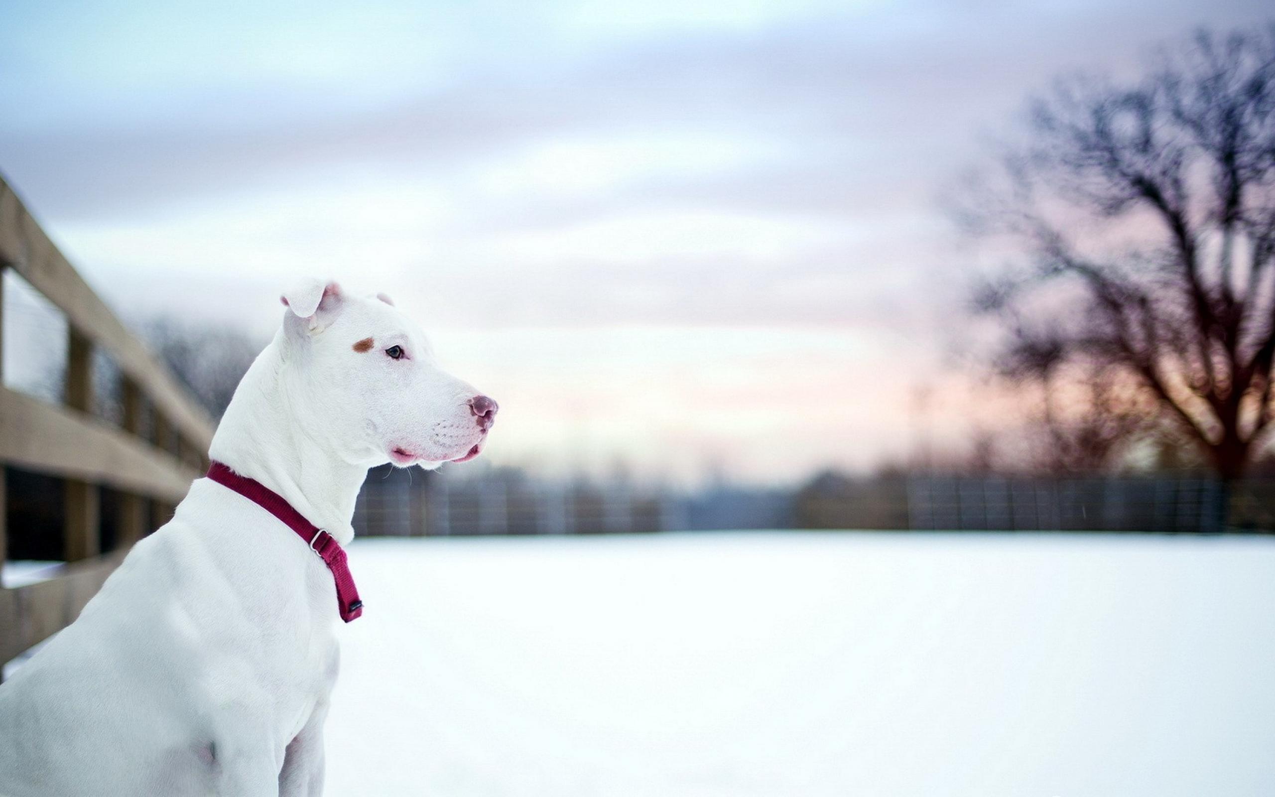 Wallpaper White pit bull in the snow