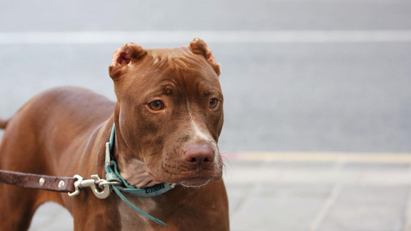 Wallpaper Brown pit bull on a leash