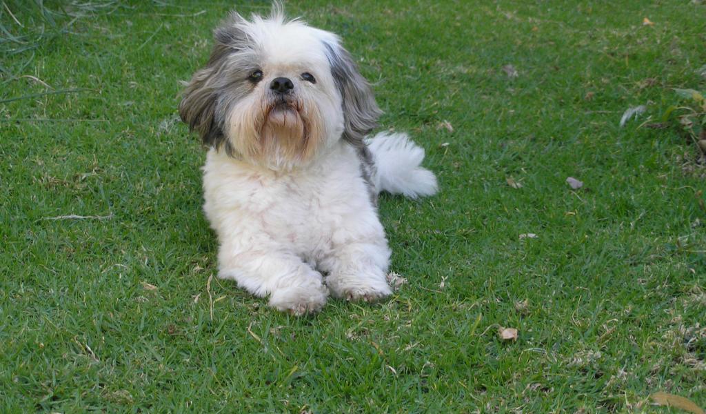 » Wallpaper Shih Tzu lying on the grass