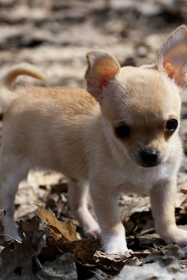 » Wallpaper Chihuahua puppy on leaves