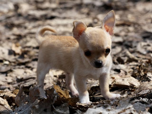 Wallpaper Australian shepherd puppy on the autumn leaves