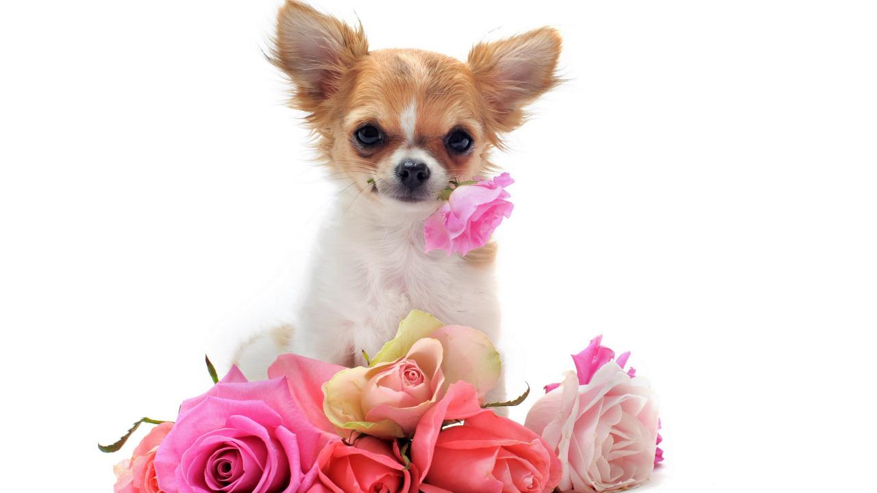 » Wallpaper Chihuahua with a bouquet of roses