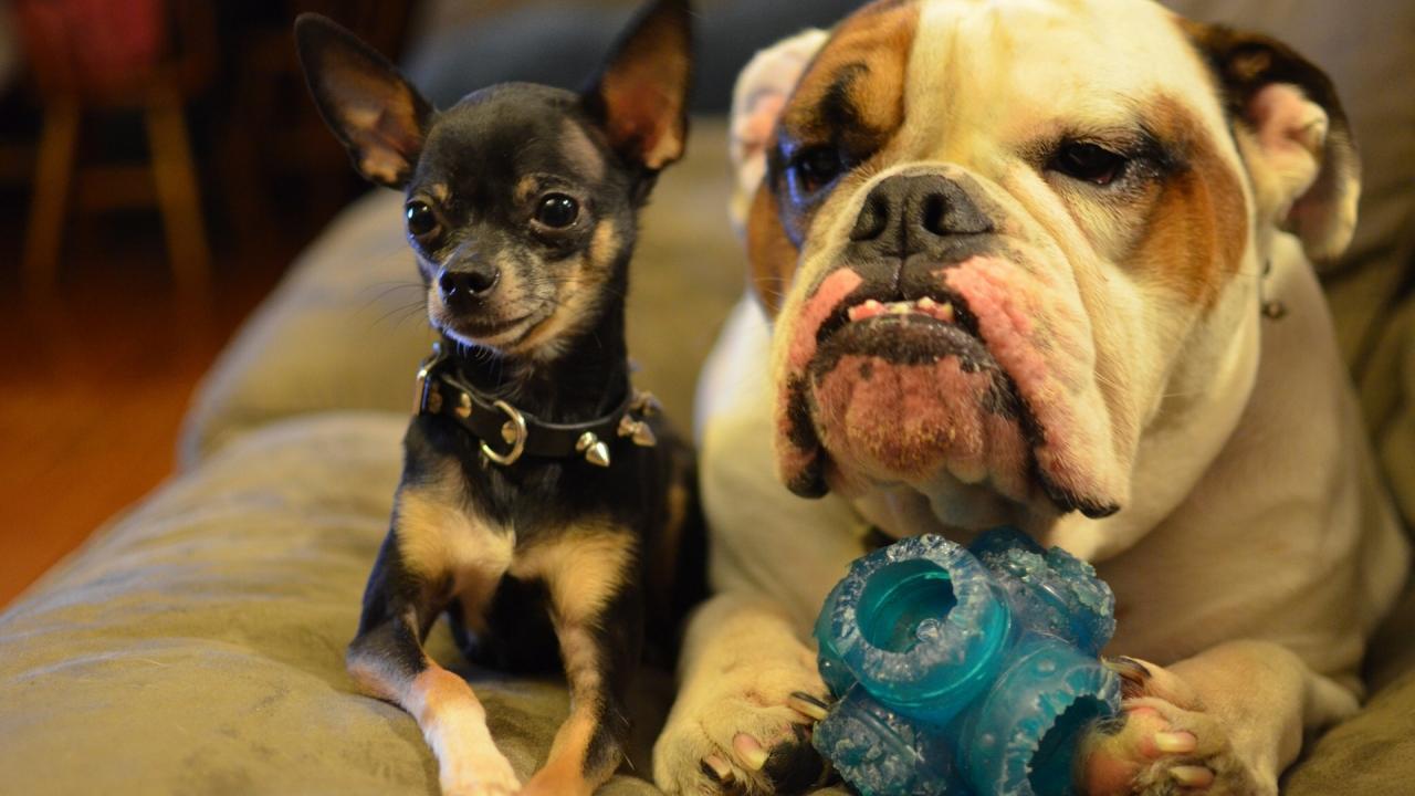 Wallpaper Little chihuahua with big dog