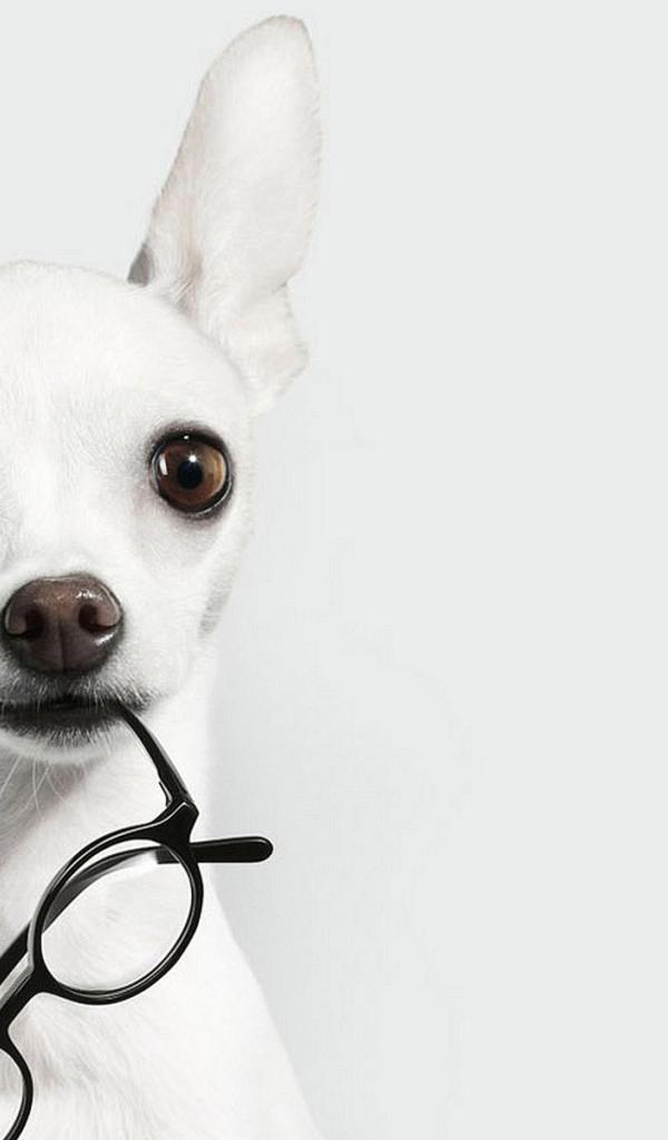 Wallpaper White Chihuahua with glasses