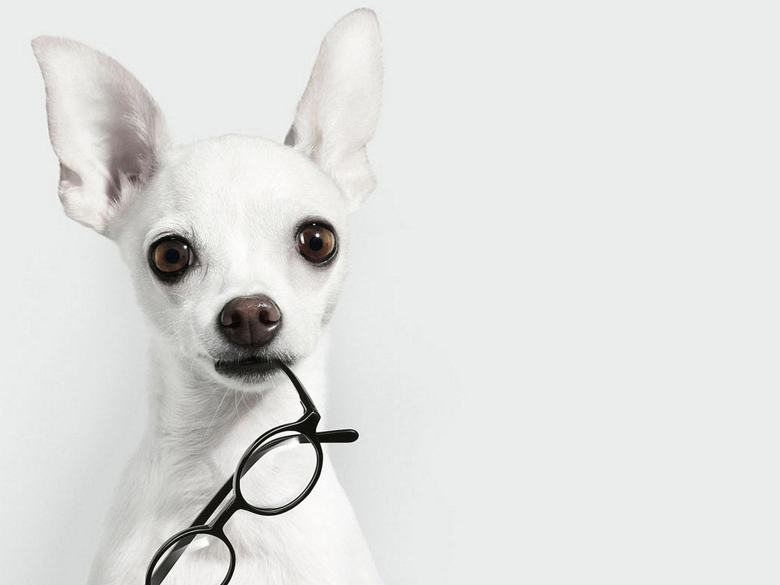 Wallpaper White Chihuahua with glasses