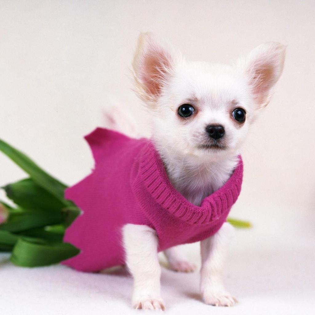 » Wallpaper White chihuahua in a pink sweater