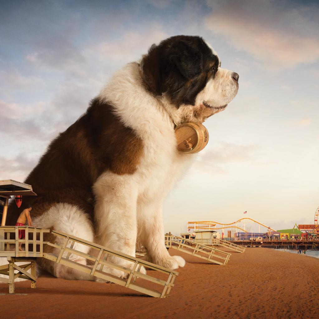 Wallpaper Huge St. Bernard dog on the beach