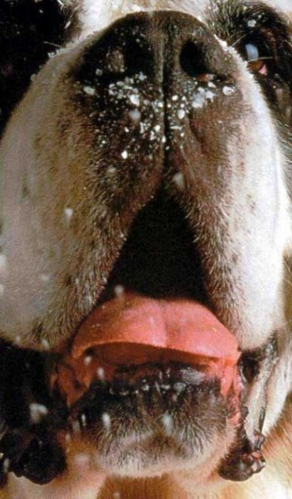Wallpaper Snow on the face of the St. Bernard