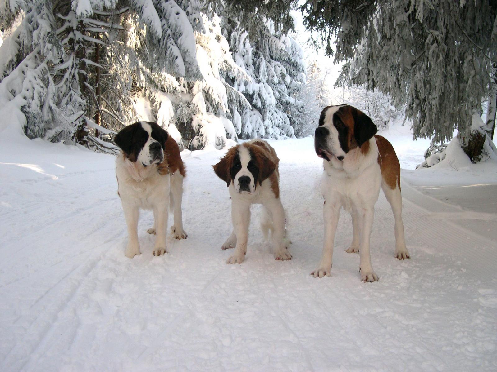 » Wallpaper Three St. Bernard in the forest