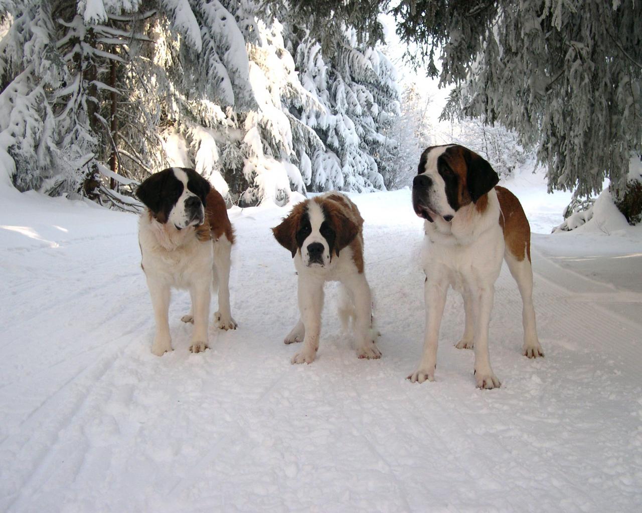 » Wallpaper Three St. Bernard in the forest