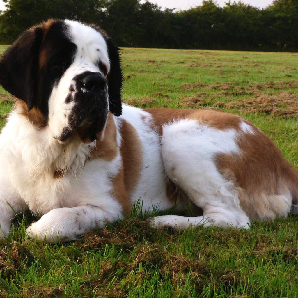 Wallpaper St. Bernard dog resting on the lawn