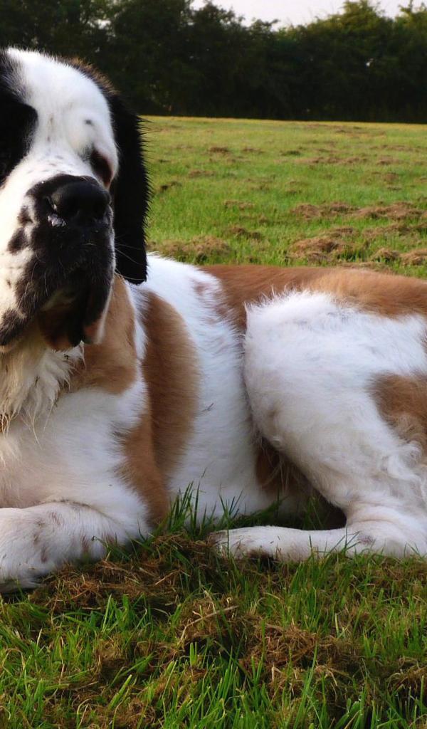 Wallpaper St. Bernard dog resting on the lawn