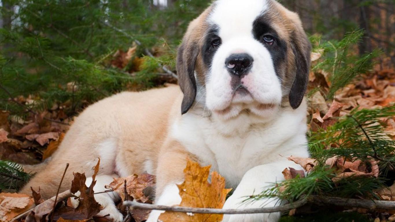 Wallpaper Saint Bernard puppy in the forest