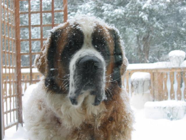 Wallpaper Snow on the face of the St. Bernard