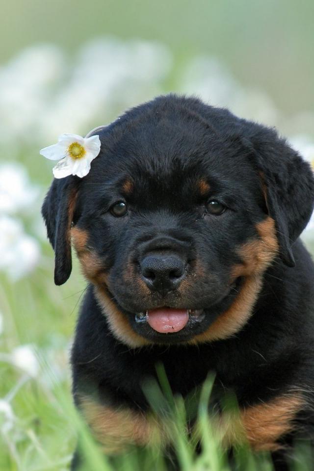 Wallpaper Rottweiler puppy with flower