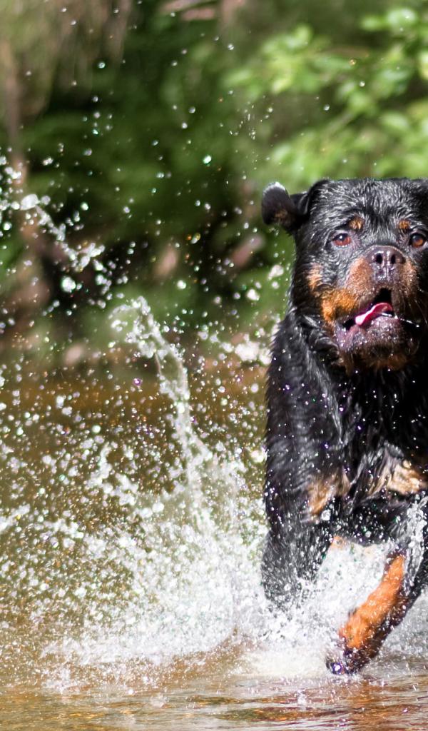 Wallpaper Rottweiler runs on water