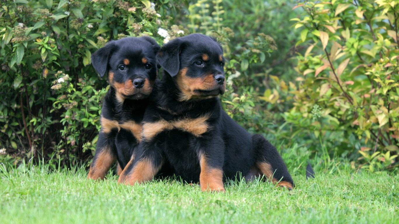 Wallpaper A pair of puppies Rottweiler