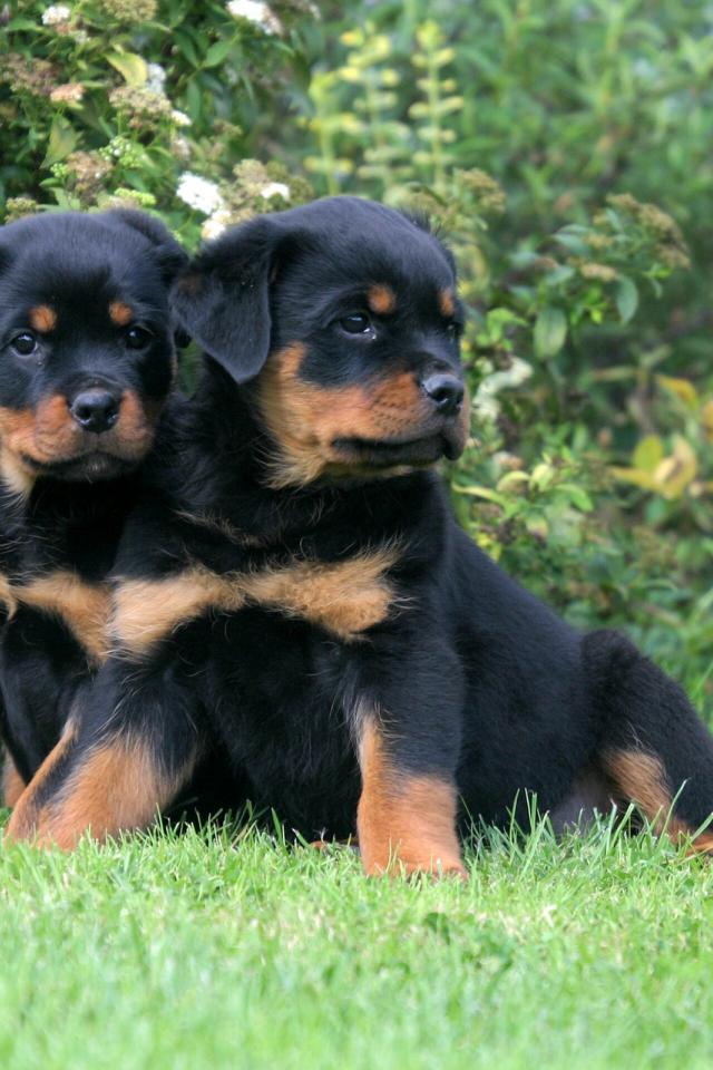 Wallpaper A pair of puppies Rottweiler