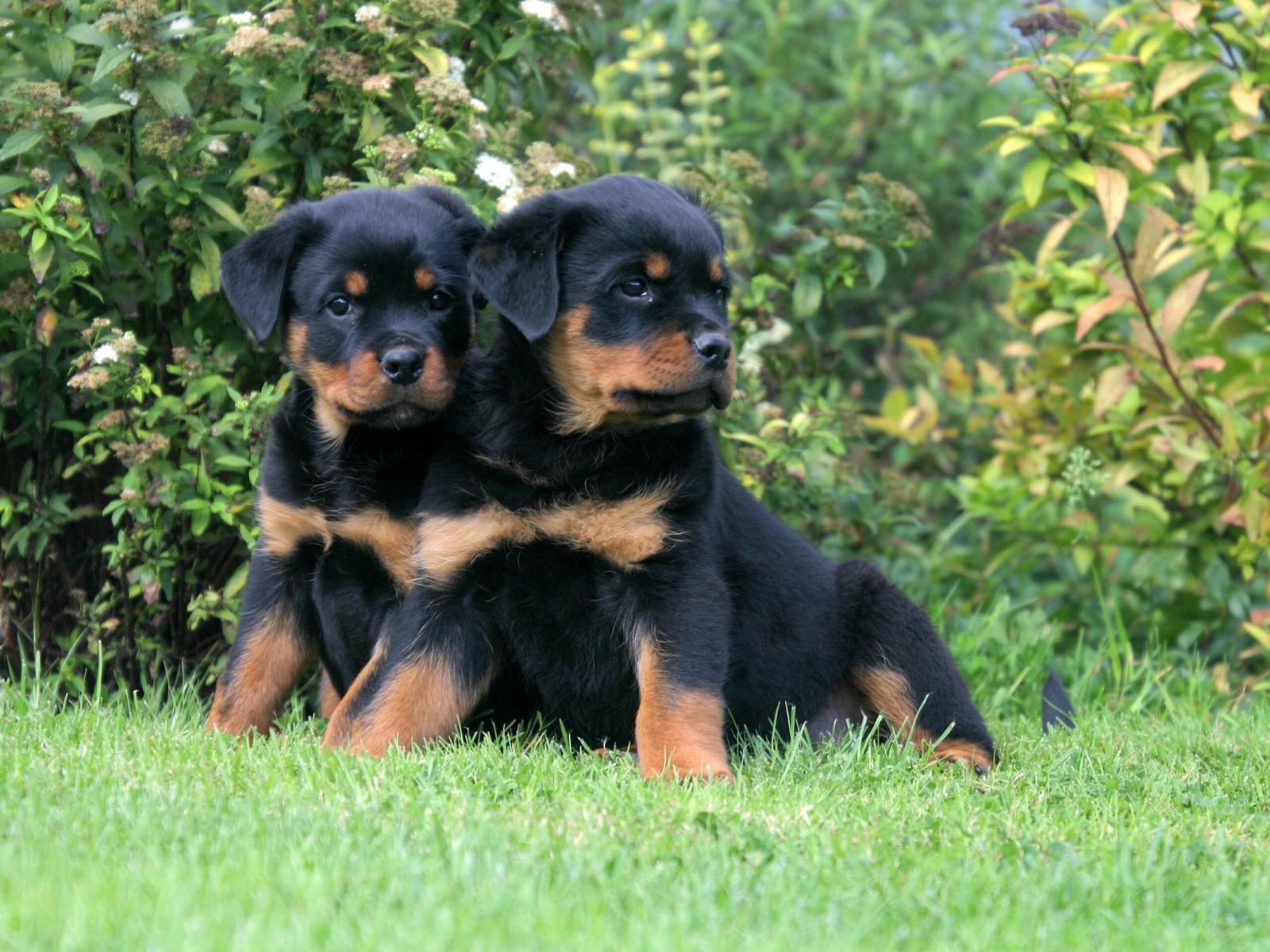 Wallpaper A pair of puppies Rottweiler