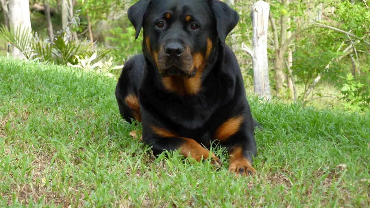Wallpaper Rottweiler dog in spring forest