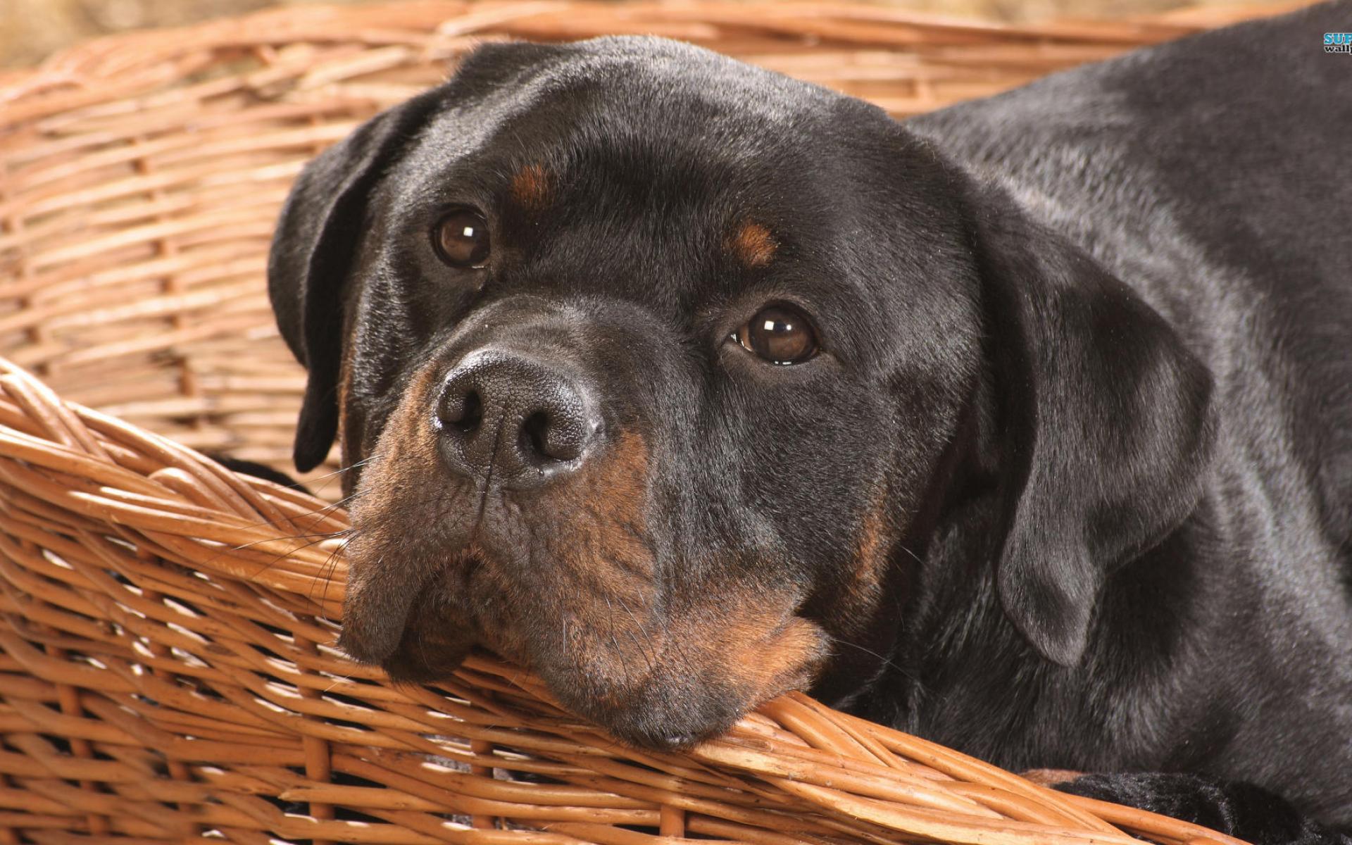 Wallpaper Rottweiler in a basket