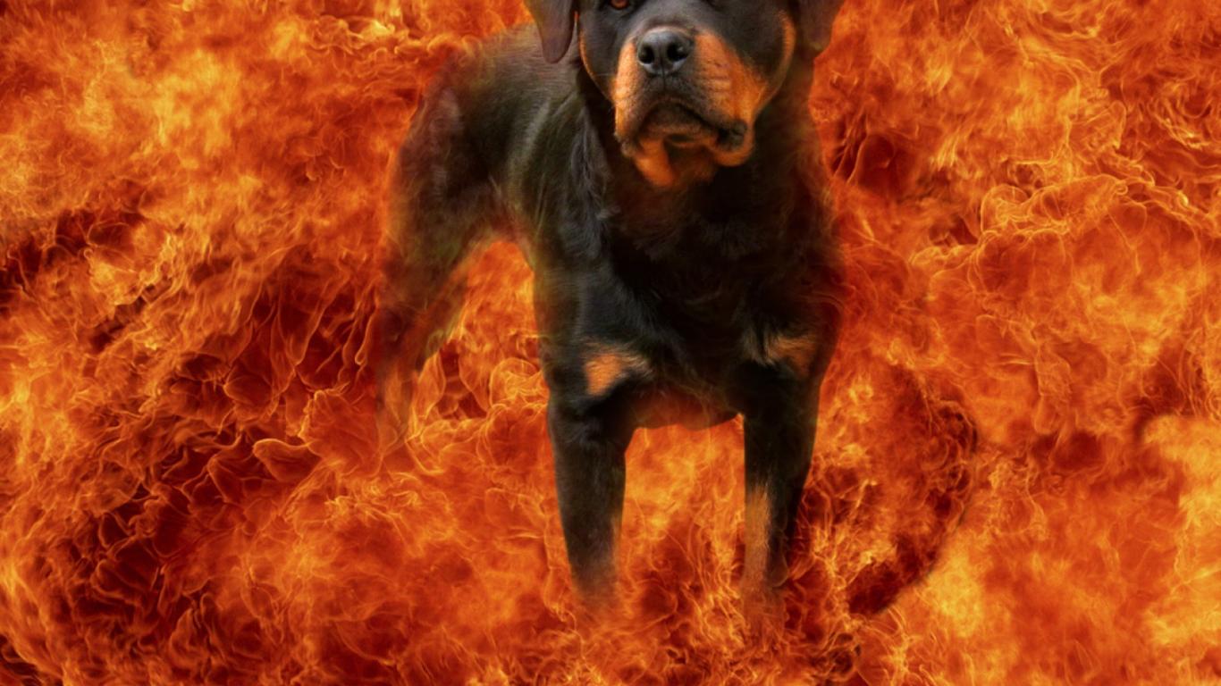 » Wallpaper Rottweiler in fire