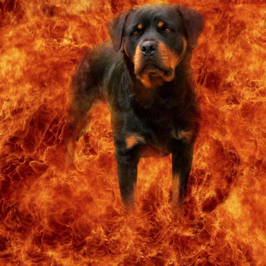 » Wallpaper Rottweiler in fire