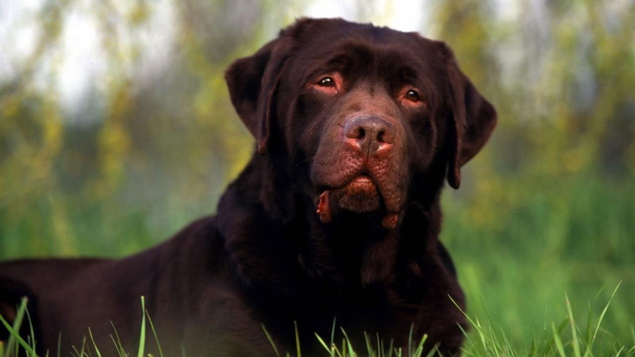 Wallpaper Tired Rottweiler lying on the grass