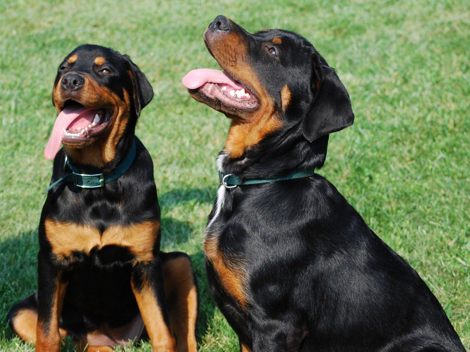 Wallpaper A pair of Rottweilers with happy-faced