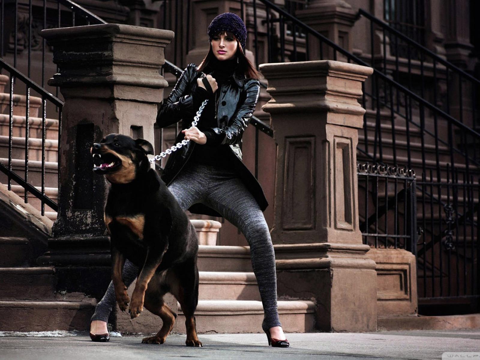 Wallpaper Girl holding a Rottweiler