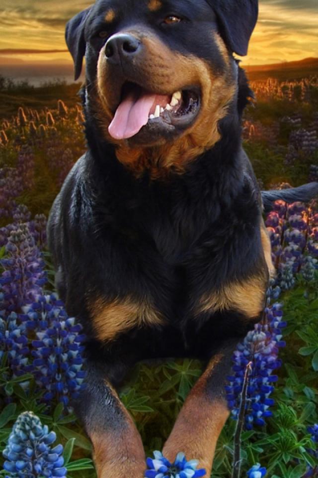 Wallpaper Rottweiler in flowers