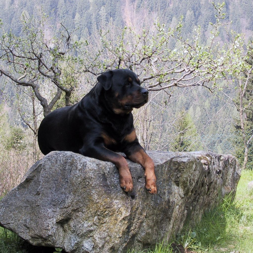 » Wallpaper Proud Rottweiler on a stone
