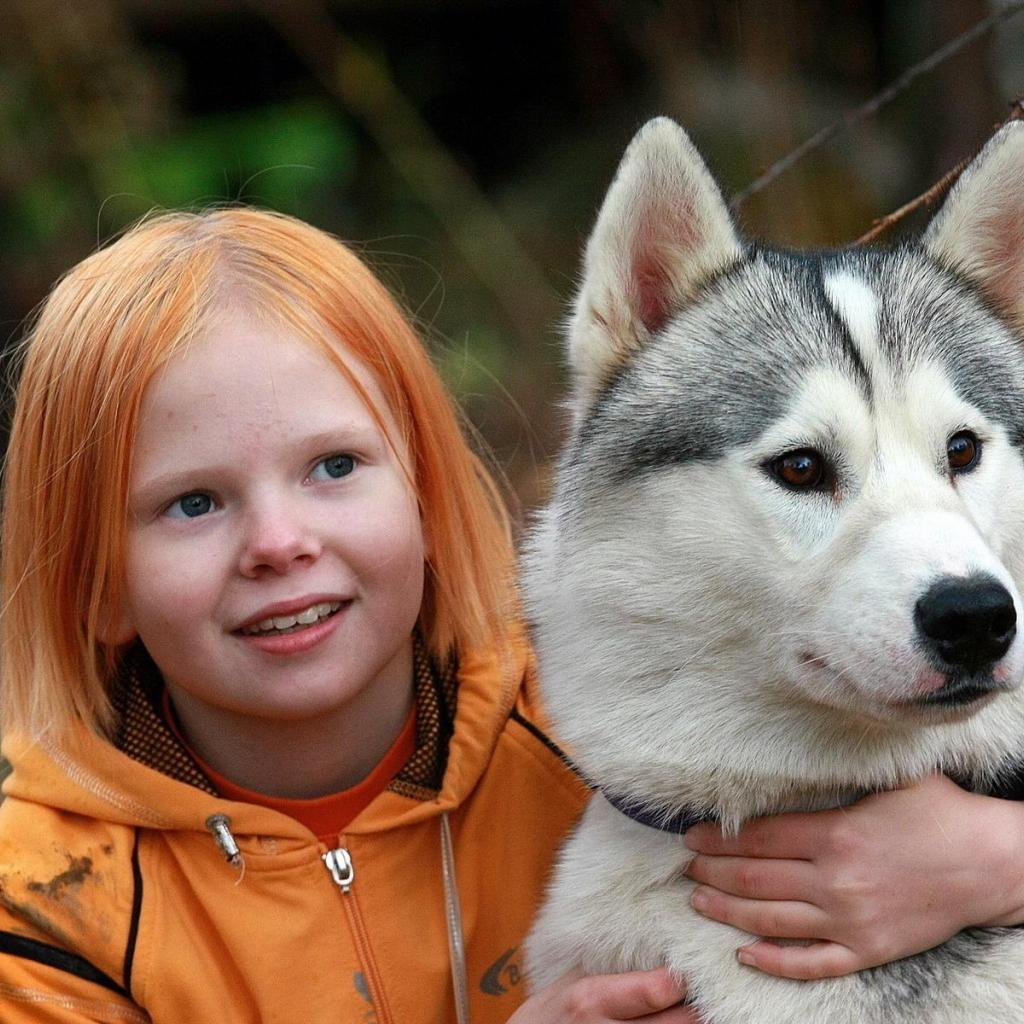 Wallpaper Girl hugging husky