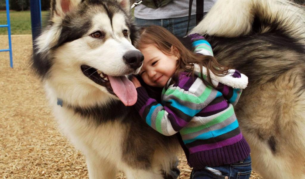 Wallpaper Girl and a big husky