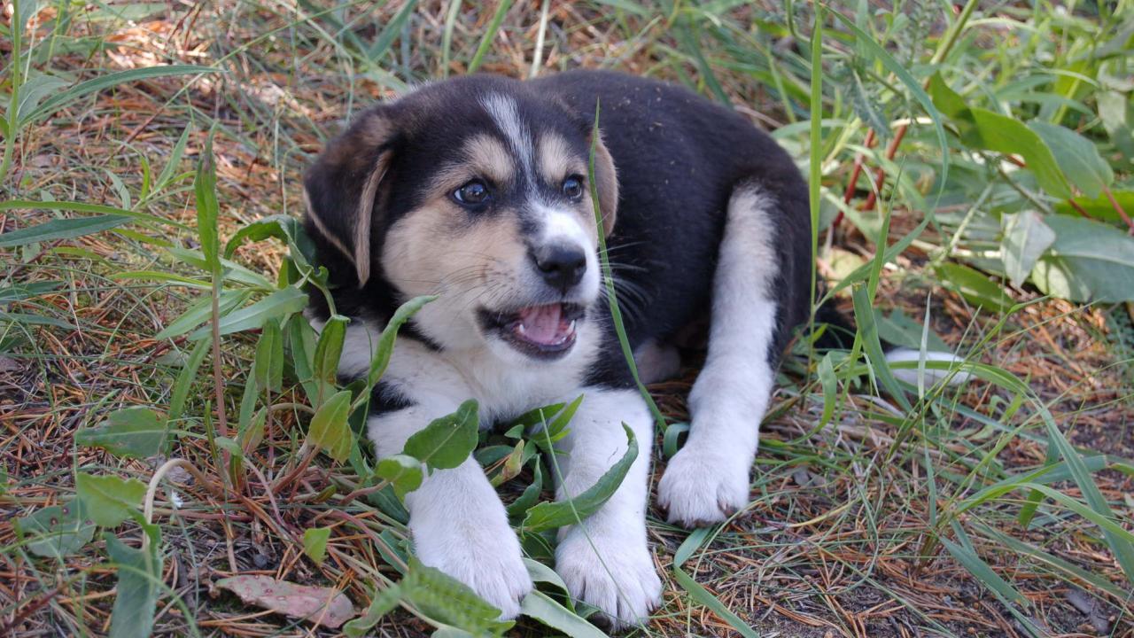 Wallpaper Husky puppy in the grass