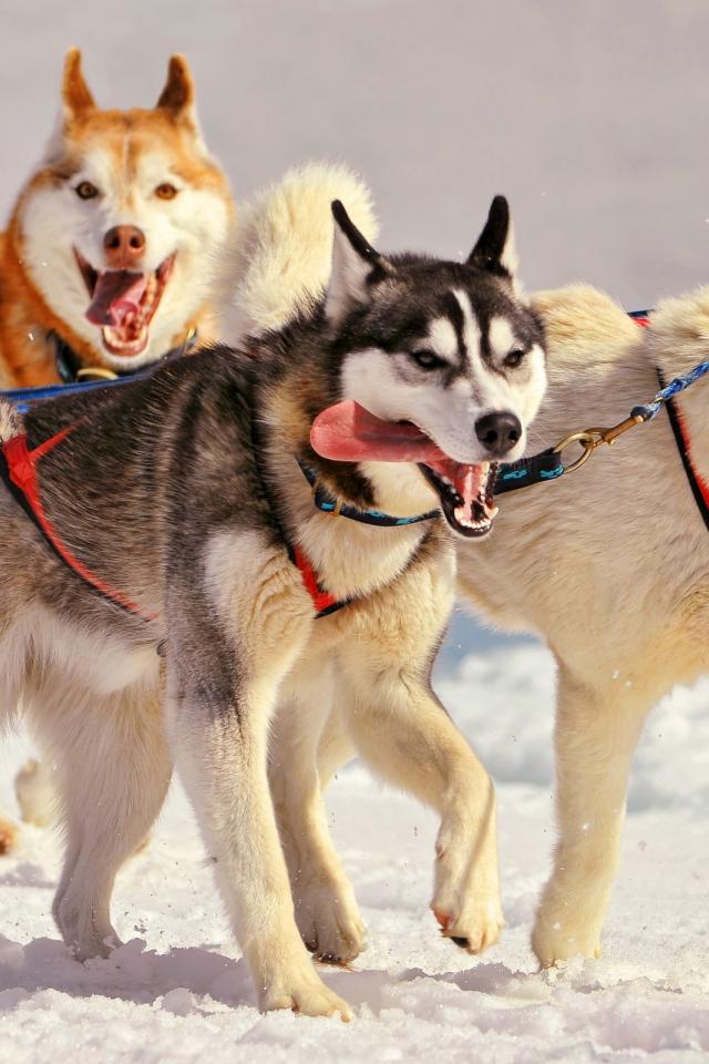 Wallpaper Huskies in harness